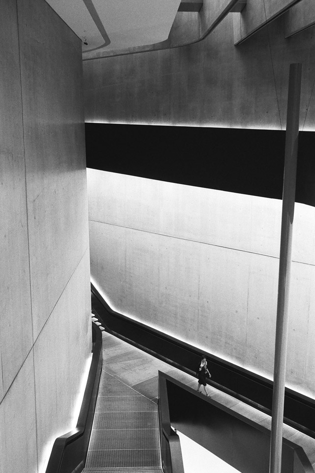 When I was in Rome, I was excited to learn that the MAXXI museum had recently opened. It was to be the first Hadid building I was to visit, and it did not disappoint. I loved the interiors and the ways in which her twisted stairways moved through the interior space. The galleries themselves were open and airy and I spent much of the time admiring the building more than the art inside, shooting photos inside and out. I can't wait to visit more of her work.